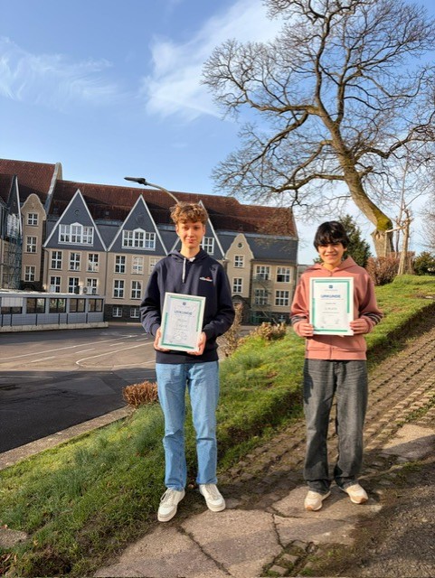 Wie bereits in den vergangenen Jahren hat auch dieses Mal wieder unser 9-er Sowi-Kurs am Wirtschafts-Quiz der Remscheider Wirtschaftsjunioren mit großem Erfolg teilgenommen. Erfreulicherweise haben direkt zwei Schüler unserer Schule (Mustafa und Simon) die ersten beiden Plätze belegt und wurden zusätzlich zur Urkunde mit einem Gutschein belohnt.