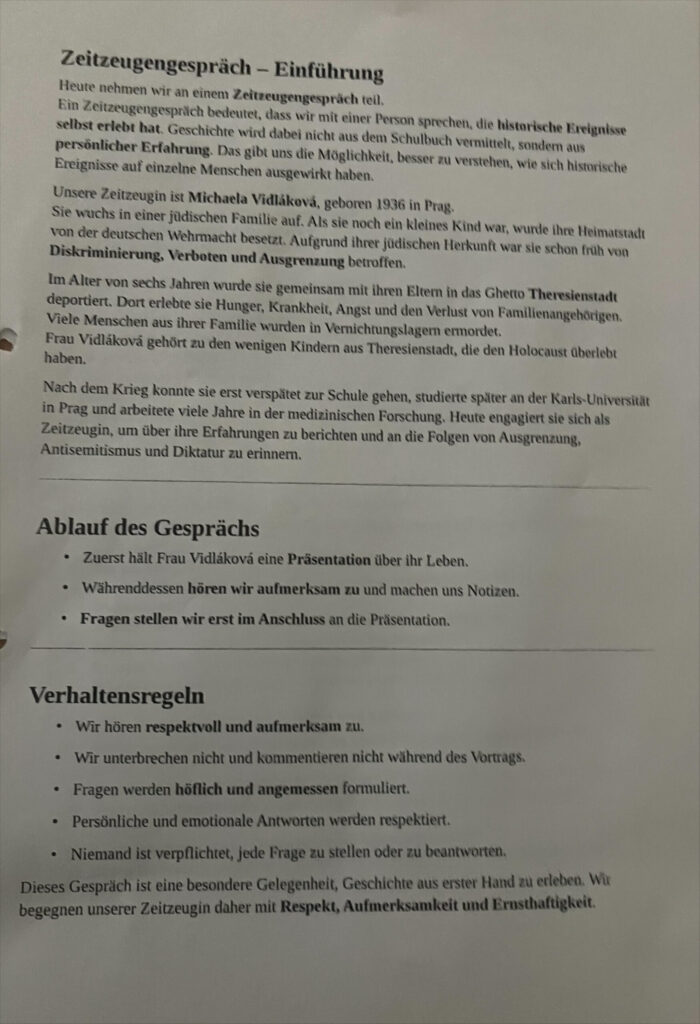 Dank der Zeitzeugin Michaela Vidlakova wurde Geschichte heute an unserer Schule lebendig- Schüler unserer Klassen 10 erlebten Vergangenheit direkt und authentisch.