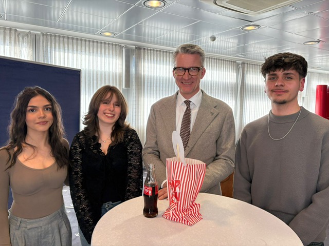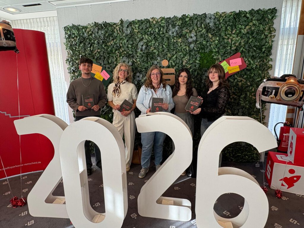 Im Rahmen des Digitalisierungspreises, welchen wir auch schon mehrfach vom Rotary-Club verliehen bekommen haben, fand in der Sparkasse Remscheid eine Veranstaltung statt, in welcher das (digitale) Engagement von Schülerinnen und Schülern gewürdigt wurde. Stellvertretend für die vielen engagierten Jugendlichen unserer Schule haben Berrin und Sophie (Medienscouts) und Mert unser Schülersprecher an dem Event teilgenommen.